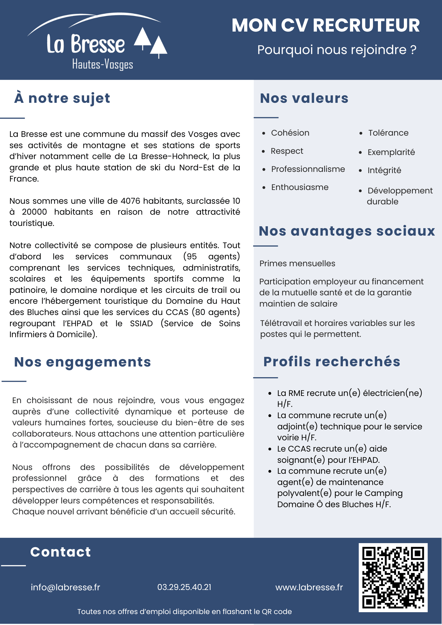 Retrouvez également les actualités des offres d'emploi de la ville de La Bresse sur notre page Linkedin en scannant ce QR code.